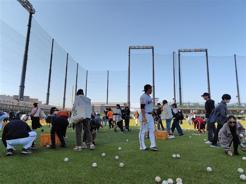 選手のサイン色紙が当たる「ジャイアンツ拳」や、ファンも一緒にグラウンドでボールを拾い企画も人気です。![]()