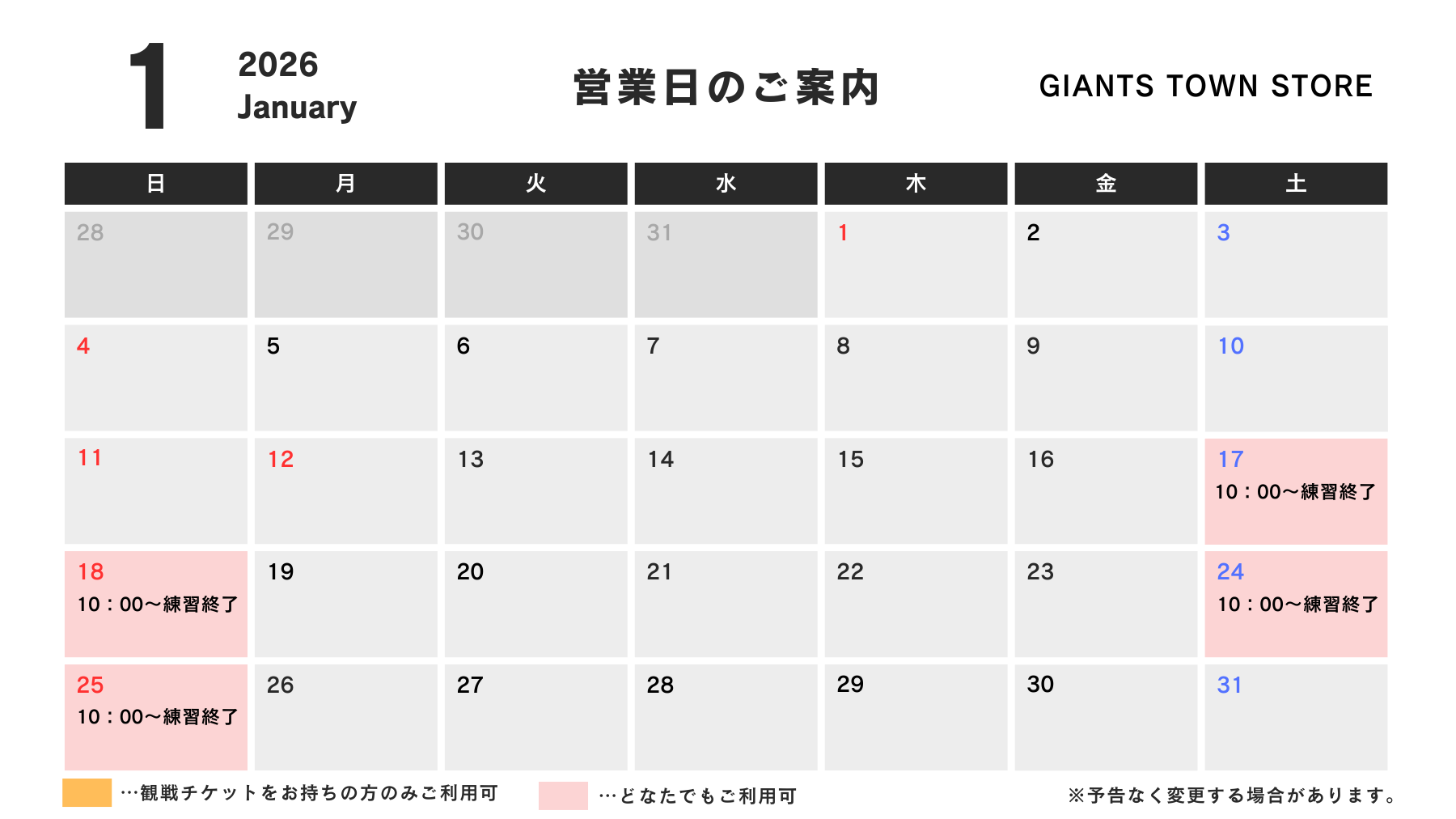| 定休⽇ | 試合・イベント日程に準ずる。上部カレンダーをご確認ください。 |